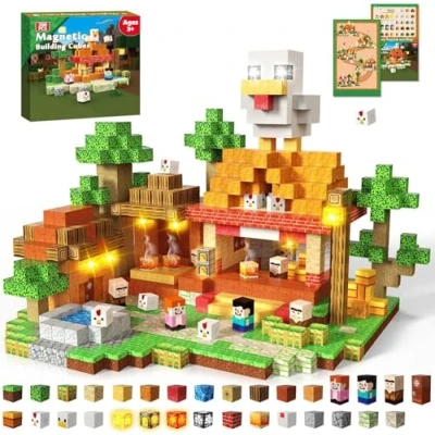 Safe & Durable - Dive into a universe of magnetic toys designed for budding builders. Including 200 magnetic cubes in 35 designs. Among these are 5 cube tiles set up with switches that emit beautiful light. Idea booklet with the storyline and beautiful patterns, keep them busy in clever ways. Magnetic building cubes are made of high quality ABS material and crafted with the round edges and right size. Our magnetic cubes kit with internal magnets, which is easier for toddlers ages 3+ to stick the cubes together and make builds sturdy. Parent- Child Interactive Games - Every set of our sensory tiles and magnetic cubes is an adventure waiting to happen. Let children effortlessly assemble blocks to create characters, scenes: Build Your Roast Chicken Store, Become the Shop Manager– every ‘Click’ brings a sense of accomplishment! Perfect for kids' toys, especially for boys aged 4-8, these magnetic construction toys make construction fun and easy. It helps to promote kids’ creative thinking, concentration and patience, hand-eye coordination motor skills, cooperative skills, spatial and motor skills! Stem Learning Blocks - Let's embark on an adventure with magnetic blocks! Spark the imagination of children with our magnetic building blocks toys, perfect for kids ages 4-8. These magnetic tiles encourage open-ended play, allowing kids to construct, demolish, and rebuild as they please. Safe, durable, and designed for little hands, our magnetic cubes make learning fun, enhancing focus, patience, and motor skills—ideal toys for kids, especially boys aged 5-10. Cultivate Your Child's Creativity - Our magnetic building blocks are not just toys; they're tools for learning. Engage your child in the wonders of magnetism, structure, and creativity. Ideal for both beginners and seasoned little architects, these magnets for kids promote spatial thinking and problem-solving. Perfect STEM toys help kids gain a deeper understanding of the structure world and learn about magnetic properties!Our magnetic blocks for kids ages 3-10 offer endless possibilities,Perfect for kids who love to question, build, and discover. Gift of Imaginative Play - Looking for the ultimate gift for the creative child in your life? Our magnetic building blocks toys offer hours of stimulating play. With patterns of Chickens, grass, wood, flames, rocks, etc, designed for small builders, this set is the perfect birthday, Christmas, Children's day, STEM, school activities or surprise gift that will delight children and encourage a love of learning and creativity.Make it the best option for parent-to-kid bonding play on weekends!, Manufacturer: ToyUnited