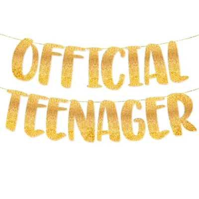 Pre-Strung for Easy Setup: Save time and hassle with our pre-strung "Official Teenager" glitter banner, perfect for effortless 13th birthday decorations. Premium Gold Glitter Finish: Featuring high-quality glitter, this banner adds a touch of sparkle and elegance to any 13th birthday party, ensuring a dazzling celebration. Durable and Reusable: Crafted from sturdy materials, this banner is designed to be lightweight yet durable, allowing for multiple uses over the years. Versatile for Any Teen: The stylish glitter design makes this banner suitable for both girls and boys, adding a festive touch to any teenager's 13th birthday party. Eye-Catching Party Decor: The bold lettering and shimmering glitter make this banner a standout piece, perfect for creating memorable photo backdrops and enhancing overall party decor. Perfect Gift Idea: Ideal for gifting, this banner is a thoughtful addition to any 13th birthday party decoration, making it a special day for the new teenager in your life. Easy to Hang Anywhere: With its pre-strung design, this banner can be effortlessly hung on walls, across tables, or as part of a photo booth setup, offering versatile decorating options. Celebrate the Milestone: Mark the significant milestone of officially becoming a teenager with this beautiful glitter banner, making the 13th birthday celebration truly unforgettable., Manufacturer: TOYVENTURES