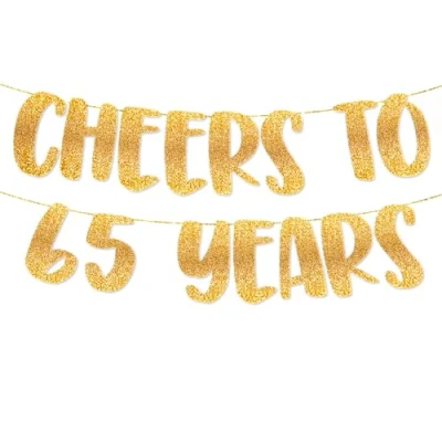 TOYVENTURES Cheers to Years Gold Glitter Banner Happy Birthday Party Decorations 8 Feet, Wedding Anniversary Supplies Milestone Celebration Decor Pre strung (Gold 65 years)