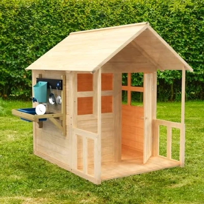 BUTTERCUP COTTAGE WOODEN PLAYHOUSE: Transform your garden into a world of adventure with the Buttercup Cottage Wooden Playhouse. Designed for creative play, this charming cottage provides the perfect outdoor escape for little ones. DURABLE FSC-CERTIFIED WOOD CONSTRUCTION: Built from high-quality FSC-certified wood, this sturdy playhouse ensures years of fun, offering a safe and sustainable space for children to explore and create. CUSTOMIZABLE DESIGN – BUILD IT YOUR WAY: Designed with flexibility in mind, this playhouse offers four different layout options, allowing you to position the door and windows to best fit your garden space. SAFE & STYLISH FEATURES: Featuring Perspex shatter-resistant windows for natural light, a full door for a cozy feel, and a classic wooden design that blends seamlessly into any outdoor setting. OPTIONAL UPGRADES FOR MORE FUN: Enhance the play experience with a solid 1.5cm wooden floor for added durability and comfort, or expand the space with an optional verandah, giving kids even more room for imaginative adventures., Manufacturer: Mookie