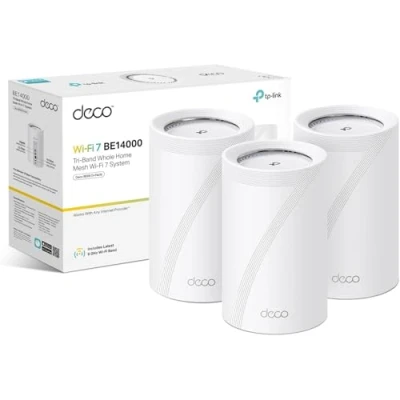 8-Stream 14 Gbps Tri-Band WiFi – 8647 Mbps (6 GHz) + 4324 Mbps (5 GHz) + 688 Mbps (2.4 GHz) Unprecedented 10 Gbps Network – 1× 10 Gbps WAN/LAN port + 1× 2.5 Gbps WAN/LAN port + 1× 1.0 Gbps port ensure max flexibility and boosted throughput. Wireless and Wired Combined Backhaul – Connects a wireless and wired backhaul with each unit simultaneously to improve overall throughput and reduce latency. Multi-Link Operation (MLO) – Simultaneously send and receive data across different bands and channels to increase throughput, reduce latency, and improve reliability. 320 MHz Channels – Double the bandwidth and enables many more simultaneous transmissions at the fastest possible speeds. Works on the 6 GHz Band – Minimizes congestion with greenfield spectrum, delivering robust high-speed connections. TP-Link HomeShield – Provides comprehensive network protection, robust parental controls, and real-time IoT security. Universal Compatibility – Backward compatible with all WiFi generations and works with any internet service provider (ISP) and modem.