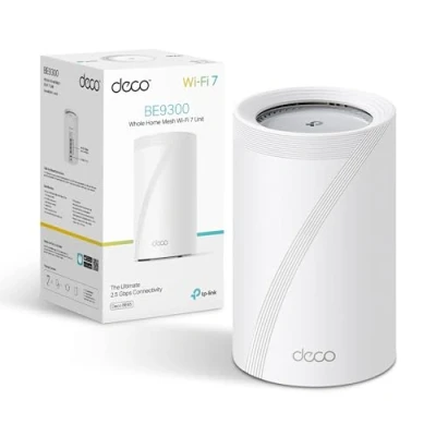 𝗦𝘂𝗽𝗲𝗿𝗰𝗵𝗮𝗿𝗴𝗲𝗱 𝗕𝗘9300𝗧𝗿𝗶-𝗕𝗮𝗻𝗱 𝗪𝗶-𝗙𝗶 𝟳 𝗦𝗽𝗲𝗲𝗱𝘀: Features cutting-edge Wi-Fi 7 technology, including Multi-Link Operation, Multi-RUs, 4K-QAM, and 320 MHz channels. Delivers speeds of 5765 Mbps on 6GHz, 2882 Mbps on 5GHz, and 688 Mbps on 2.4GHz. 𝗩𝗮𝘀𝘁 𝗠𝗲𝘀𝗵 𝗖𝗼𝘃𝗲𝗿𝗮𝗴𝗲: Could be connected with other Deco units to expand the Wi-Fi coverage easily. (*Not compatible with non-Deco units) 𝗙𝘂𝗹𝗹 𝟮.𝟱𝗚 𝗪𝗔𝗡/𝗟𝗔𝗡 𝗣𝗼𝗿𝘁𝘀: Includes four 2.5G WAN/LAN ports and a USB 3.0 port, making it an ideal choice for future-proofing your home network. 𝗗𝘂𝗮𝗹 𝗪𝗶𝗿𝗲𝗹𝗲𝘀𝘀 & 𝗪𝗶𝗿𝗲𝗱 𝗕𝗮𝗰𝗸𝗵𝗮𝘂𝗹: Leverages TP-Link's self-developed technology to support simultaneous wireless and wired backhaul with other Deco units. Maximises Wi-Fi 7 benefits for faster speeds and broader coverage. 𝗔𝗜-𝗗𝗿𝗶𝘃𝗲𝗻 𝗦𝗲𝗮𝗺𝗹𝗲𝘀𝘀 𝗥𝗼𝗮𝗺𝗶𝗻𝗴: The Deco Mesh creates a unified network with a single network name. Uses AI-Roaming technology for seamless streaming and optimal speeds, adapting through advanced algorithms and self-learning as you move throughout your home. 𝐓𝐏-𝐋𝐢𝐧𝐤 𝐇𝐨𝐦𝐞𝐒𝐡𝐢𝐞𝐥𝐝: Protect your home network with TP-Link's premium security service. Free features include network security scans, IoT device identification, parental controls, quality of service, and reports. Visit TP-Link site for more information. 𝗩𝗣𝗡 𝗖𝗹𝗶𝗲𝗻𝘁 & 𝗦𝗲𝗿𝘃𝗲𝗿 𝗦𝘂𝗽𝗽𝗼𝗿𝘁: Enables home devices to access remote VPN servers without installing VPN software on each device. Supports simultaneous VPN and regular internet connections for enhanced security and flexibility. 𝗘𝗮𝘀𝘆 𝗦𝗲𝘁𝘂𝗽 & 𝗠𝗮𝗻𝗮𝗴𝗲𝗺𝗲𝗻𝘁: Quickly set up and manage your mesh router using the free Deco App, available for Android and iOS. 𝗩𝗼𝗶𝗰𝗲 𝗖𝗼𝗻𝘁𝗿𝗼𝗹: Control Deco BE65 using voice commands with Amazon Alexa or Google Assistant-enabled devices.