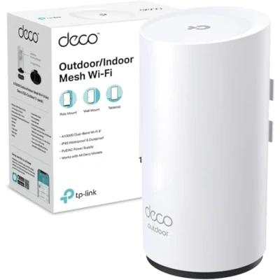 AX3000 Dual-Band Wi-Fi 6- Enjoy binge-watching your favourite series in 4K with combined speeds of up to 3000 Mbps (574 Mbps on 2.4 GHz and 2402 Mbps on 5 GHz) Multiple mount options - Pole mount, wall mount, and tabletop Working outdoor - Industry-leading IP65 dust & water resistance, Multiple mount options - Pole mount, wall mount, and tabletop Powered over Ethernet - Provide both data connection and electric power with a single cable Full Gigabit Ethernet - 2 × Gigabit WAN/LAN Ethernet ports provide solid internet access at high speeds. Compatible with every other Deco model to form a Mesh network TP-Link HomeShield - Provides comprehensive network protection, robust parental controls, and real-time
