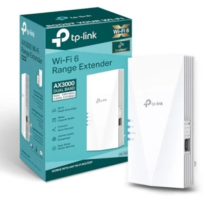 TP Link Mesh WiFi 6 Booster, Ultraxtend Range Extender AX3000 Mbps with 1 Gigabit Port, Internet 5GHz, App Control Easy Setup, UK Plug (RE700X)