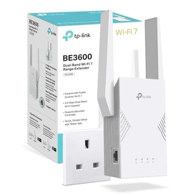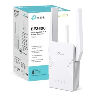 3.6 Gbps Dual-Band Wi-Fi 7: RE225BE wifi extender booster delivers up to 3.6 Gbps speed(2882 Mbps on 5 GHz and 688 Mbps on 2.4 GHz), providing consistent performance for daily streaming, browsing, and multitasking Multi-Link Operation (MLO): RE225BE wifi booster supports MLO technology to improve throughput, reduce latency, and increase link reliability Gigabit Ethernet Port: RE225BE wifi extender provides faster wired connections to smart TVs, computers, and gaming consoles Smart Roaming TP Link WiFi Extender: Walk from room to room and stay connected with the fastest possible speeds EasyMesh-Compatible WiFi 7 Internet Booster: Works with EasyMesh routers and range extenders to form seamless whole home Mesh Wi-Fi, preventing drops and lag when moving between signals Quick and Simple Setup: Plug in and then easily set up via a press of the WPS button or via the Tether App Great Compatibility: RE225BE wifi repeater works with all Wi-Fi generations and devices and all internet providers