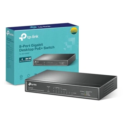 TP Link TL SG1008P 8 Port Gigabit PoE Switch, Network Switch with 4 PoE+ Ports, Multicast Optimization Ethernet Splitter, Power up to 30 W Metal Casing, Ideal for IP Surveillance and Access Point