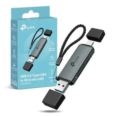 TP Link UA430D USB 3.0 microSD & SD Card Reader, Type C&A Memory Reader Up to 2 TB Supported, Dual Reading/Writing Compatible with iPhone/Desktops/Laptops,Faster Transmit, Plug Play