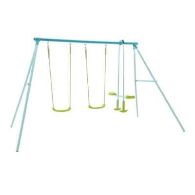 TP Triple Swing Set With Glider Adjustable Metal Stand Swings, Flexible Harness Sculpts. Heavy Duty Sturdy Frame, Glider, Backyard Outdoor Playset 6 Months+