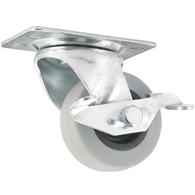 TPR Rubber Caster Wheel with Swiveling Top Plate w/Brake 2 Inch 90 lb. Load Capacity Non Marking for Hospitals, Food Service, & Other Institutional Applications