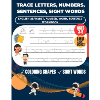 Trace Letters, Words, Sentences and Sight Words: English Alphabet handwriting Practice workbook for kids. Preschool, Pre K, Kindergarten Kids Ages 3 5. ABC print book