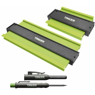 The Contour Gauge is the latest measuring tool to hit the TRACER range. The Contour Gauge is a heavy-duty tool designed for easy profile scribing including flooring, skirting and pipework. With a lockable mechanism, the Contour Gauge locks into place for precise tracing. Imperial and metric scales, measure in both centimetres and inches.130mm (5") and 250mm (10) Gauges and Deep Hole Marker.