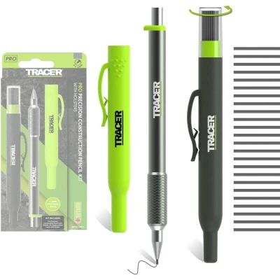 Tracer Pro Series Precision Pencil with 24 x Replacement 1.3mm Leads and Site Holsters. All in one Aluminium Marking Kit
