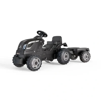 Tracteur a pédales Farmer XL + Remorque SMOBY Noir 90% Plastique recyclé Siege ajustable Capot ouvrant Volant avec