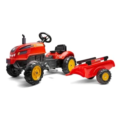 MADE IN FRANCE SINCE … ALWAYS! : Since its origins Falk has taken up the challenge of imagining, designing and manufacturing its toys in France, in our workshops located in Oyonnax in the Rhône-Alpes region, while working with local partners in order to boost the economic activity of our region and limit our ecological impact An opening hood for small mechanics: we change the candles, a small drain and leave for new adventures! A TRAILER FOR MORE POSSIBILITIES: Loading and transporting fruit and vegetables from the vegetable garden... or taking your favorite toys with you everywhere has never been so fun! THERE IS NO BETTER TO HELP YOUR PARENTS CARE FOR THE GARDEN PLANT! : A great tractor to have fun in the garden in any weather, This is a very bucolic program for our kids with green thumbs! IT'S COSTAUD! : Making outdoor toys strong enough to withstand the most intrepid children has been doing for over 70 years. Who said a plastic toy can't last? At least not us!
