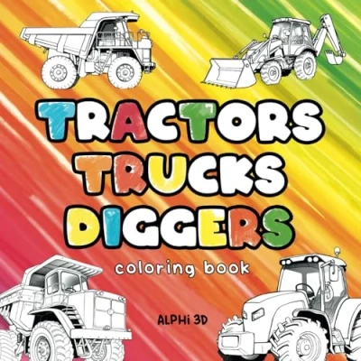 Tractors Trucks Diggers coloring Book: Cartoon style pages with Tractors, and for kids adults