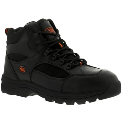 DURABLE LEATHER UPPER: Manufactured from hard-wearing action leather, the mens work boots are designed to withstand daily use in demanding work environments while maintaining a smart, professional appearance with long-lasting performance. STEEL TOE PROTECTION: Built with a strong steel toe cap to protect against impacts and compression, making these black boots ideal for any construction site, warehouse, maintenance, and other safety-focused workplaces. The steel toe boots keep you comfortable and protected. SLIP-RESISTANT SOLE: The soft textile lined mens steel toe cap boots features an SRA-rated slip-resistant outsole that provides reliable grip on low-traction surfaces, helping to reduce the risk of slips and falls during busy workdays. ALL-DAY COMFORT: The waterproof safety boots feature a supportive non-slip sole help cushion every step and reduce foot fatigue. The lightweight safety boots allow you to stay comfortable and focused during long shifts on your feet. SECURE LACE-UP FIT: The classic boot with laces design ensures a stable, adjustable fit for added support and control, making these boots suitable for tradespeople, DIY tasks, and everyday workwear use.