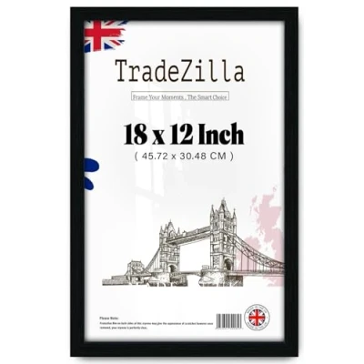 SPECIFICATIONS: Made to display 18x12 inch(30.48 x 45.72 )a photo in a beautiful black frame and high definition clear front Perspex, to preserve your favorite photos. Our moldings have a width of approx. 30mm and a depth of approx. 15 mm. DESIGN: The Flat Design with MDF solid wood and created uniquely with modern design, brushed black finish to create an elegant appearance and Perspex to protect your picture against scratches, dust and moisture. Comes with great material and fine workmanship, this frame is durable and long lasting use. DUAL OREINTATION: This photo frame is not only stylish and affordable, but also easy to clip and hang. Comes with an easel backing to display on your nightstand, bookshelf, tabletop, dresser, bathroom countertop. Intended to be placed or hung either vertically or horizontally to fit in the space available. VERSATILE & GREAT GIFT: It serves as an interior décor addition enhancing the look of your home, office or personal room by displaying your beautiful photos, memories or any favorite artwork. It is also an ideal gift idea to your family, friends or loved ones on any special occasion such as Christmas, New Years, Birthday, Marriage, Mother's Day, Valentines' Day etc. Protective Packaging: TradeZilla developed exclusive proprietary packaging that helps ensure safe delivery of fragile items; order with confidence, click and add to cart today.