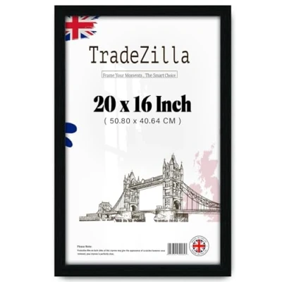 SPECIFICATIONS: Made to 20x16 inch(40.64 x 50.80) display a photo in a beautiful black frame and high definition clear front Perspex, to preserve your favorite photos. Our moldings have a width of approx. 30mm and a depth of approx. 15 mm. DESIGN: The Flat Design with MDF solid wood and created uniquely with modern design, brushed black finish to create an elegant appearance and Perspex to protect your picture against scratches, dust and moisture. Comes with great material and fine workmanship, this frame is durable and long lasting use. DUAL OREINTATION: This photo frame is not only stylish and affordable, but also easy to clip and hang. Comes with an easel backing to display on your nightstand, bookshelf, tabletop, dresser, bathroom countertop. Intended to be placed or hung either vertically or horizontally to fit in the space available. VERSATILE & GREAT GIFT: It serves as an interior décor addition enhancing the look of your home, office or personal room by displaying your beautiful photos, memories or any favorite artwork. It is also an ideal gift idea to your family, friends or loved ones on any special occasion such as Christmas, New Years, Birthday, Marriage, Mother's Day, Valentines' Day etc. Protective Packaging: TradeZilla developed exclusive proprietary packaging that helps ensure safe delivery of fragile items; order with confidence, click and add to cart today.