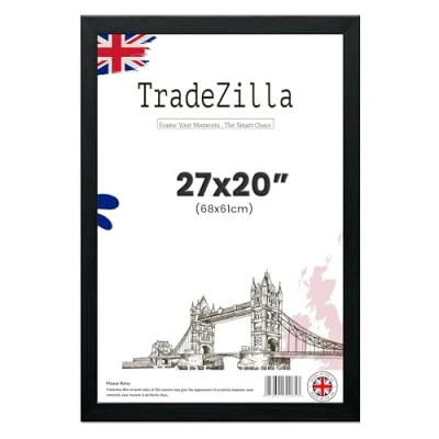 Classic Design– The Classic Design 27x20" picture poster frame size is 68x61cm- is perfect for Certificate, Movie, Poster photo .Premium quality MDF wood and HD Perspex combine to create this sturdy photo frame, allowing you to showcase your precious moments with confidence. Enjoy the perfect balance of modernity and elegance with this sleek black frame. Size& Dual Oreintation: - These 27x20" frame (68x61cm) sizes are perfect for actual picture size that will fit inside the frame. The width of the frame moulding: is 30mm approx. The depth of the frame moulding: is 15mm approx. Adjustable hanging hook allow frame to hang any portrait or landscape photo! Versatile & Stylish: Whether you want to preserve your achievements, display your favorite artwork, or create an eye-catching decor piece, our black poster frame is an ideal choice. Its sleek design seamlessly integrates into any setting, making it suitable for various occasions and perfect as a thoughtful gift. Great Gift Bring Happiness Preserving those wonderful memorial with our fantastic collection of frames. Elegant wood grain design suitable for different occasions like Wedding, Anniversary, Birthday and Various Festivals. Turn any bare wall into a gallery of your own with this excellent frame, perfect gift for family and friends. Save Packaging TradeZilla developed exclusive proprietary packaging that helps ensure safe delivery of fragile items; order with confidence, click and add to cart today. When you receive our frame Simply peel off the film before usage, and enjoy the convenience and peace of mind this frame offers.