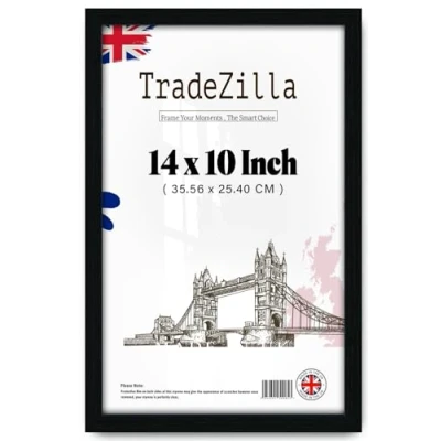 Display Your Posters: Quickly load your 25.40 x 35.56 cm posters and display them with ease with these snap-in Black poster frames. 14" x 10" picture frames that are perfect for your posters, art prints, or photos. Professional Presentation: Our 35.56x25.40 CM poster frames are designed with a polished HD Clear crystal Perspex for professional presentation for your posters. The crystal-clear finish ensures your photos remain the focal point, free from dust and scratches. Celebrate Life’s Moments with Timeless Framing: Capture and display life’s most precious moments with Tradezilla 25.4 cm x 35.56 cm frame. Their classic Black design and superior craftsmanship make them a perfect addition to any home or office. Whether for personal use or as a gift, these frames turn memories into lasting treasures. Material & Easy Mounting We have adopted a new type of upgraded material, which is characterized as lightweight, strong, safe and environmentally friendly. backboard with saw tooth hangers for vertical or horizontal wall hanging. Please Remove the protective films on both sides of the Perspex before use! Made in the UK: All of our picture frames are made in United Kingdom. We hold ourselves to an incredibly high standard and pride ourselves on putting customer satisfaction first.