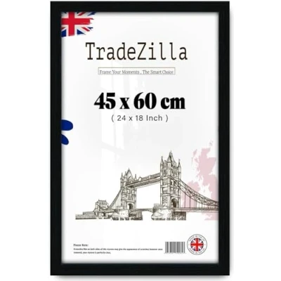 Classic Design– The Classic Design picture poster frame size is 45x65cm- is perfect for Certificate, Movie, Poster photo .Premium quality MDF wood and HD Perspex combine to create this sturdy photo frame, allowing you to showcase your precious moments with confidence. Enjoy the perfect balance of modernity and elegance with this sleek black frame. Size& Dual Oreintation: - These frame (45x60cm) size are perfect for actual picture size that will fit inside the frame. The width of the frame moulding: is 30mm approx. The depth of the frame moulding: is 15mm approx. Adjustable hanging hook allow frame to hang any portrait or landscape photo! Versatile & Stylish: Whether you want to preserve your achievements, display your favorite artwork, or create an eye-catching decor piece, our black poster frame is an ideal choice. Its sleek design seamlessly integrates into any setting, making it suitable for various occasions and perfect as a thoughtful gift. Great Gift Bring Happiness Preserving those wonderful memorial with our fantastic collection of frames. Elegant wood grain design suitable for different occasions like Wedding, Anniversary, Birthday and Various Festivals. Turn any bare wall into a gallery of your own with this excellent frame, perfect gift for family and friends. Save Packaging TradeZilla developed exclusive proprietary packaging that helps ensure safe delivery of fragile items; order with confidence, click and add to cart today. When you receive our frame Simply peel off the film before usage, and enjoy the convenience and peace of mind this frame offers.