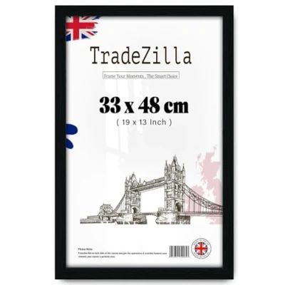 Classic Design– The Classic Design picture poster frame size is 48x33cm- is perfect for Certificate, Movie, Poster photo .Premium quality MDF wood and HD Perspex combine to create this sturdy photo frame, allowing you to showcase your precious moments with confidence. Enjoy the perfect balance of modernity and elegance with this sleek black frame. Size& Dual Oreintation: - These frame (48x33cm) size are perfect for actual picture size that will fit inside the frame. The width of the frame moulding: is 30mm approx. The depth of the frame moulding: is 15mm approx. Adjustable hanging hook allow frame to hang any portrait or landscape photo! Versatile & Stylish: Whether you want to preserve your achievements, display your favorite artwork, or create an eye-catching decor piece, our black poster frame is an ideal choice. Its sleek design seamlessly integrates into any setting, making it suitable for various occasions and perfect as a thoughtful gift. Great Gift Bring Happiness Preserving those wonderful memorial with our fantastic collection of frames. Elegant wood grain design suitable for different occasions like Wedding, Anniversary, Birthday and Various Festivals. Turn any bare wall into a gallery of your own with this excellent frame, perfect gift for family and friends. Save Packaging TradeZilla developed exclusive proprietary packaging that helps ensure safe delivery of fragile items; order with confidence, click and add to cart today. When you receive our frame Simply peel off the film before usage, and enjoy the convenience and peace of mind this frame offers.