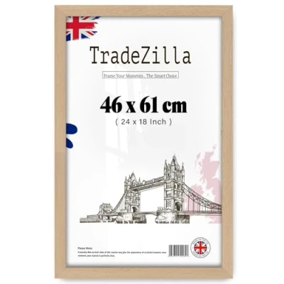 The Beauty of Simplicity: The simple and classic 46 cm x 61 cm Beech design Frame of the TradeZilla is made up of engineering wood which durable & strong & Designed with a shatterproof, Perspex. UV-resistant front HD Styrene that protects the photos from dust, moistness, corrosion. Instead of real glass, Flexible Orientation Our 460 x 610 mm frame supports both landscape and portrait orientations, ideal for showcasing your favorite artworks or memories. The user-friendly wall hanging mounts allow for easy and secure display in any direction. Easy Installation: The frame is designed for hassle-free use, featuring a metal clip on the backboard that allows for the easy removal and replacement of displayed items. This thoughtful design ensures a secure fit while minimizing the risk of injury, making it simple to update your display as often as you like. Easy Photo placement: Featuring a sturdy backboard, metal clip closures, and shatter-resistant construction, this Beech frame ensures secure and convenient placement and updating of your pictures. Satisfaction: At TradeZilla, your satisfaction is paramount. We strive for excellence in our product experiences and carefully package with shrink-wrapped, our frames to arrive in pristine, perfect condition.