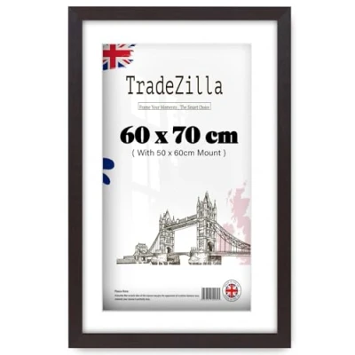 TradeZilla Elegant Mahogany Picture Frame 60x70CM Size With 50x60CM Mount, Flat Wooden Effect Frame, Home Décor Wall Art Poster (Mahogany)