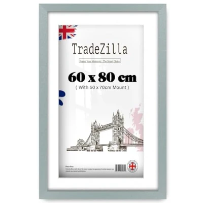 TradeZilla Elegant Silver Wide 80x60cm Poster Frame with Mount 50x70 cm Solid MDF Wood Along Clear HD Perspex Use for Movie/Puzzle/Picture Portrait and Landscape Display.(Silver)