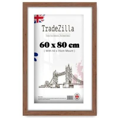 TradeZilla Elegant Walnut Wide 80x60cm Poster Frame with Mount 50x70 cm Solid MDF Wood Along Clear HD Perspex Use for Movie/Puzzle/Picture Portrait and Landscape Display.(Walnut)