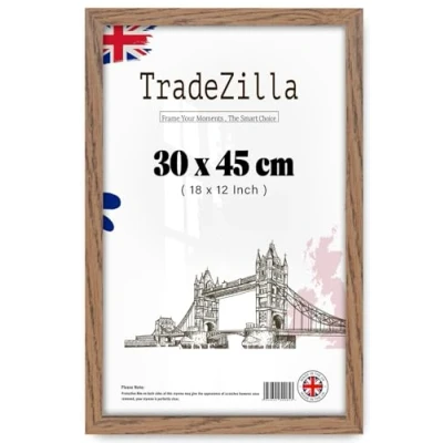 Display Your Posters: Quickly load your posters and display them with ease with these snap-in poster frames. This pack contains a ( 30 x 45 CM ) picture frames that are perfect for your posters, art prints, or photos. Material– ( 30 x 45 CM ) picture frame are made from solid MDF frame have shatterproof Perspex/styrene sheet. This frame comes with complete clear ice white mount & adjustable hanging hooks hangers allow you to hang the frame vertically or horizontally so it can be easily hung on a wall with a picture hook. Our mouldings Size of. General Frame: TradeZilla With its elegant design and exquisite craftsmanship, this stylish and practical photo frame is an excellent addition to any room, complementing various decor styles. Material & Easy Mounting:We have adopted a new type of upgraded material, which is characterized as lightweight, strong, safe and environmentally friendly. backboard with saw tooth hangers for vertical or horizontal wall hanging. Please Remove the protective films on both sides of the Perspex before use! Save Packaging TradeZilla developed exclusive proprietary packaging that helps ensure safe delivery of fragile items; order with confidence, click and add to cart today. When you receive our frame simply peel off the film before usage, and enjoy the convenience and peace of mind this frame offers.