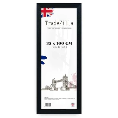 Material: This photo frame is made of Solid Black engineered wood gives a high-end appearance to your 14 x 40" photos and prints. Shatterproof Perspex a 1.2mm clear Styrene is crystal clear and easy to clean. The acrylic window shows off your artwork. Harder to break than glass, it's safer to hang on walls. Clear Viewing: The high-definition front cover provides an unobstructed view of your photos or artwork, ensuring a clear display without any glare or distortion. Versatile Display: This frame offers flexible display options. It can be hung both vertically and horizontally, making it suitable for various settings, including homes, galleries, theaters, and more. This versatility ensures your artwork or photos are showcased beautifully in any environment. Ideal Decor and Gift: These elegant Black gallery wall picture frames effortlessly blend into any home or office decor, adding a touch of sophistication. They are not only perfect for enhancing your space but also make thoughtful gifts for friends, family, or as a housewarming or Christmas present. Satisfaction: At TradeZilla, your satisfaction is paramount. We strive for excellence in our product experiences and carefully package with shrink-wrapped, our frames to arrive in pristine, perfect condition.