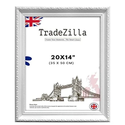 TradeZilla Large White Ornate Shabby Chic 35X50 CMPicture/Photo/Poster Vintage Antique frame for Art Prints, Vertically or Horizontally, Wall Mounting Hardware Included (White)