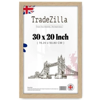 TradeZilla Modern Large 30 x 20 Inches Poster picture Frame Solid MDF Wood Clear Perspex Sheets Front For Living Room & Office Wall Gallery Decor (76.2 50.8 cm) (Oak)