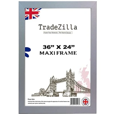 TradeZilla Modern Large Black Maxi Poster Frame 61 x 91.5 cm (36 24 Inch) Picture Frames Solid MDF Wood Perfect For Gifting Wall Gallery Art Home/Office Decor (Silver)