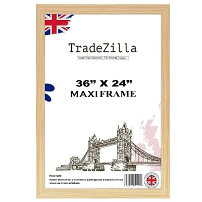 TradeZilla Modern Large Pine Maxi Poster Frame 61 x 91.5 cm (36 24 Inch) Picture Frames Solid MDF Wood Perfect For Gifting Wall Gallery Art Home/Office Decor (Pine)