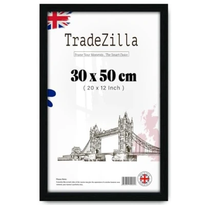 SPECIFICATIONS: Made to display 30x50cm a photo in a beautiful black frame and high definition clear front Perspex, to preserve your favorite photos. Our moldings have a width of approx. 30mm and a depth of approx. 15 mm. DESIGN: The Flat Design with MDF solid wood and created uniquely with modern design, brushed black finish to create an elegant appearance and Perspex to protect your picture against scratches, dust and moisture. Comes with great material and fine workmanship, this frame is durable and long lasting use. DUAL OREINTATION: This photo frame is not only stylish and affordable, but also easy to clip and hang. Comes with an easel backing to display on your nightstand, bookshelf, tabletop, dresser, bathroom countertop. Intended to be placed or hung either vertically or horizontally to fit in the space available. VERSATILE & GREAT GIFT: It serves as an interior décor addition enhancing the look of your home, office or personal room by displaying your beautiful photos, memories or any favorite artwork. It is also an ideal gift idea to your family, friends or loved ones on any special occasion such as Christmas, New Years, Birthday, Marriage, Mother's Day, Valentines' Day etc. Protective Packaging: TradeZilla developed exclusive proprietary packaging that helps ensure safe delivery of fragile items; order with confidence, click and add to cart today.