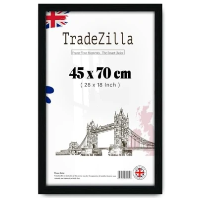 Save Material: Made to 45x70cm display a photo in a beautiful black frame and high definition clear front Perspex, to preserve your favorite photos. Our moldings have a width of approx. 30mm and a depth of approx. 15 mm. Design: The Flat Design with MDF solid wood and created uniquely with modern design, brushed black finish to create an elegant appearance and Perspex to protect your picture against scratches, dust and moisture. Comes with great material and fine workmanship, this frame is durable and long lasting use. Dual Orientation: This photo frame is not only stylish and affordable, but also easy to clip and hang. Comes with an easel backing to display on your nightstand, bookshelf, tabletop, dresser, bathroom countertop. Intended to be placed or hung either vertically or horizontally to fit in the space available. Versatile: It serves as an interior décor addition enhancing the look of your home, office or personal room by displaying your beautiful photos, memories or any favorite artwork. It is also an ideal gift idea to your family, friends or loved ones on any special occasion such as Christmas, New Years, Birthday, Marriage, Mother's Day, Valentines' Day etc. Save Packaging: TradeZilla developed exclusive proprietary packaging that helps ensure safe delivery of fragile items; order with confidence, click and add to cart today.
