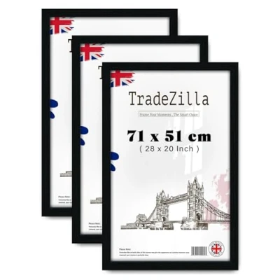 TradeZilla Pack of 3 Modern Rectangle Style, Art Gallery Picture Photo Frame (71 x 51 CM) Horizontal/Vertical Wall Display, Solid MDF Wood for Living Room, Décor [ Black ]
