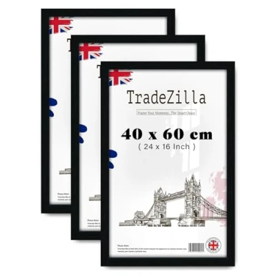 TradeZilla Pack of 3 Premium Poster Frame (40 x 60 CM) Handmade Rectangle MDF wood Finish 24 16 Inch Display Perspex For Wall Art, Picture, Gallery [ Black ]
