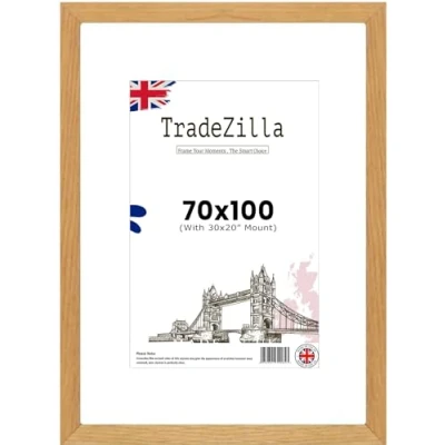 TradeZilla Premium Oak Poster Frame 70x100cm Fit white Mount Size Maxi(36x24) Engineering Wood Gallery/Artwork/Print or Gifting 700 x 1000mm [oak with Mount]