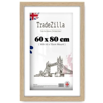 TradeZilla Premium Oak Poster Frame 80x60cm Fit white Mount Size (70x50cm) Engineering Wood Gallery/Artwork/Print or Gifting 800 x 600mm [oak with Mount]