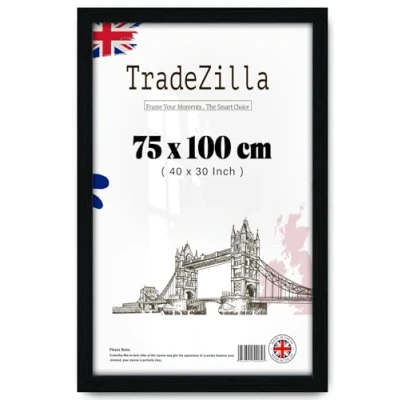 Classic Design– The Classic Design picture poster frame size is ( 75 x 100 CM ) - is perfect for Certificate, Movie, Poster photo .Premium quality MDF wood and HD Perspex combine to create this sturdy photo frame, allowing you to showcase your precious moments with confidence. Enjoy the perfect balance of modernity and elegance with this sleek frame. Size Dimensions: The picture display diameter of the ( 75 x 100 CM ) poster frames - With Mouldings - The mouldings measures of . Total Size Frame is an exact fit for images. Perfectly fits and standard frames. Multi Display:Our ( 75 x 100 CM ) poster frame for wall is perfect for displaying any of your cherished memories, children’s drawings, pictures or prints in your office, home, living room, art gallery, college, corridor. Two frames allow you more freedom to display different styles of decoration. Perfect Decoration, Versatile Gifts: Perfect for various indoor space such as living room/bedroom/dining room/office/cafe and is a great value gift that can surprise family and friends Satisfaction or Refund: At TradeZilla, your satisfaction is paramount. We strive for excellence in our product experiences and carefully package our frames to arrive in pristine, perfect condition