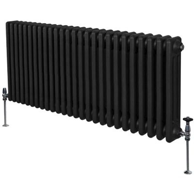 Infuse warmth into your home with our cutting-edge traditional style 3 column horizontal radiator in black - a perfect blend of timeless elegance and modern efficiency. Crafted with precision from premium 1.5mm carbon steel, these radiators are not only built to last but also designed to impress. Standing tall at 600mm and spanning 1192mm in width, they offer versatility in placement, fitting seamlessly into various spaces with ease. Boasting a sleek black finish, these radiators serve as a striking focal point, enhancing the ambiance of any room with their bold presence. Their appeal goes beyond aesthetics as they are meticulously engineered for optimal performance. Featuring triple columns with robust steel tubes measuring 25mm, they deliver superior heat output, ensuring your space remains cosy and comfortable. The triple layered powder coating not only enhances durability but also provides resistance against wear, preserving the radiator's pristine appearance for years to come.