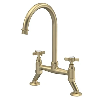 Brushed Brass Finish: The kitchen taps for sink with a brushed brass finish bring a warm, classic feel to your space. This soft gold tone pairs beautifully with both light and dark countertops for a rich, timeless look. Round Base with Curved Spout: These kitchen sink taps feature a round base paired with a high curved spout, creating a smooth and balanced look that blends beautifully into both classic and modern kitchen layouts. 2 Hole Bridge Design: These kitchen mixer taps 2 hole feature a classic bridge layout with two separate mounting holes, creating a symmetrical look that adds timeless charm and balanced design to both traditional and modern kitchens. Dual Crosshead Handles: With two separate crosshead handles for hot and cold water, this mixer tap kitchen sink gives you precise control over water temperature, making it ideal for users who prefer traditional functionality and balanced water flow. Quality Materials: Made from strong and durable brass, this kitchen mixer tap are built to last through daily use while resisting rust, corrosion, and wear, making it a reliable fixture for long-term performance in any modern kitchen. Efficient Performance: Featuring advanced ceramic disc technology, these kitchen mixer taps offers smooth, drip-free operation and consistent water flow, helping to prevent leaks and reduce maintenance over time for everyday convenience. Dimensions: Measuring W: 235 mm D: 200 mm H: 510 mm, these kitchen mixer taps are designed to suit most standard kitchen sinks, offering a simple installation process and a neat, professional-looking result. 3 Years Manufacturer's Guarantee: This 3-year guarantee reflects our commitment to quality and gives you peace of mind, knowing your kitchen mixer tap is backed by reliable support., Weight: 2.645547144 pounds, Manufacturer: Balterley