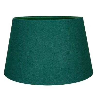 Traditionally designed circular drum shaped lamp shade suitable for table or pendant. Made of high quality dark forest green linen fabric with white gloss inner metal frame. Features inner matching cotton fabric lining giving this shade a luxurious look and feel. Product dimensions: Height - 19cm, Top diameter - 23cm, Bottom diameter - 30cm. Maximum wattage allowed is 60w. Features a reversible gimbal allowing usage for both table lamps and pendant ceiling roses. Complete with shade reducer ring allowing for most lamp lamp bases - B22/BC, E14/SES and E27/ES. Light bulb not included., Weight: 0.6393405598 Pounds, Manufacturer: Happy Homewares
