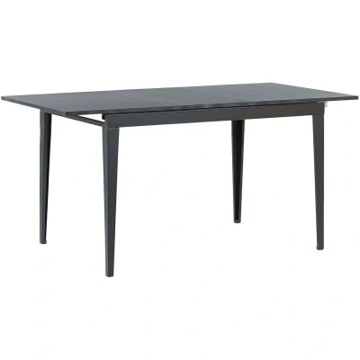 General description Black Dinner Table with Extendable Top. If you are looking for classic, multifunctional furniture that matches well with various interior styles, this extending table is a perfect choice. The rectangular top, made out of high-quality MDF, is set on stable powder-coated metal legs. The piece ensures a comfortable place by the table for four people, and can accommodate up to six by sliding the tabletop and adding the additional element to the middle part of the table. Technical specifications Product Type: Dining Table Style: Modern General Color: Black Main Material: MDF Legs Material: Metal Shape: Rectangular Finish: Powder Coated Dimensions: Width: 80 cm, Length: 120/160 cm, Height: 77 cm Weight: 25 kg Weight Capacity: 50 kg Seats Up To: 4 - 6 People Installation Full Assembly Required Estimated Assembly Time: 20-40 min Usage To maintain the durability and aesthetics of the worktop, it is recommended to use place mats and coasters. Remove wet stains as soon as