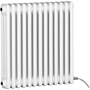 ManoManoGeneral description These are brand new classic style column radiators made from mild steel, designed to resemble traditional cast iron radiators. They are manufactured to the highest standards using 1.3mm thick steel and are painted with a two-coat powder process for a long-lasting, durable finish. The radiators come with an industry-leading 5-year guarantee and include an energy-efficient PTC electric element, allowing for easy wiring into almost any room without the need for central heating. Technical specifications Material: 1.3mm Mild Steel Finish: White RAL 9016 Powder Coating Tested to: 16 Bar Height: 480mm Number of Columns: 3 Electric Element: PTC element 220-240V 50Hz with 1m long power cable (requires hard wiring) Heat Outputs: 3 Columns 599mm: 2047 BTU, 600 watts 3 Columns 821mm: 3071 BTU, 900 watts 3 Columns 999mm: 3071 BTU, 900 watts 3 Columns 1177mm: 4265 BTU, 1250 watts Guarantee – Radiator: 5 Years Guarantee – Element: 2 Years Wall brackets and fixings included Valves