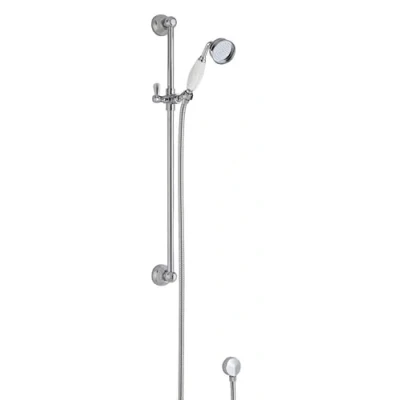 ManoManoGeneral description Pair with matching brassware for a consistent traditional bathroom design, or with a different finish for an eye-catching focal point. Manufactured from high-quality materials in a classic chrome finish with a white handle, this adjustable height slide rail kit features a Victorian-inspired round design, making it a great addition to your bathroom. The detachable single function handset helps make washing easier without compromising on style. Technical specifications Dimensions (mm): W 70 x H 750 x D 150 Product Weight (KG): 1.97 Manufactured from: Brass and ABS Other information Manufacturer's guarantee: 5 Year