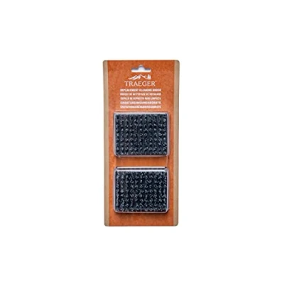 Replacement brushes for the Traeger BBQ Cleaning Brush Designed to clean cooled grill grates. Nylon bristles won't damage grates. Includes 2 replacement brush heads, Weight: 0.5 Pounds, Manufacturer: Traeger Grills